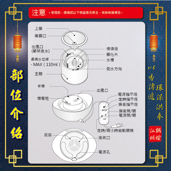 3.電子式自動控制,擴香一小時自動關機。