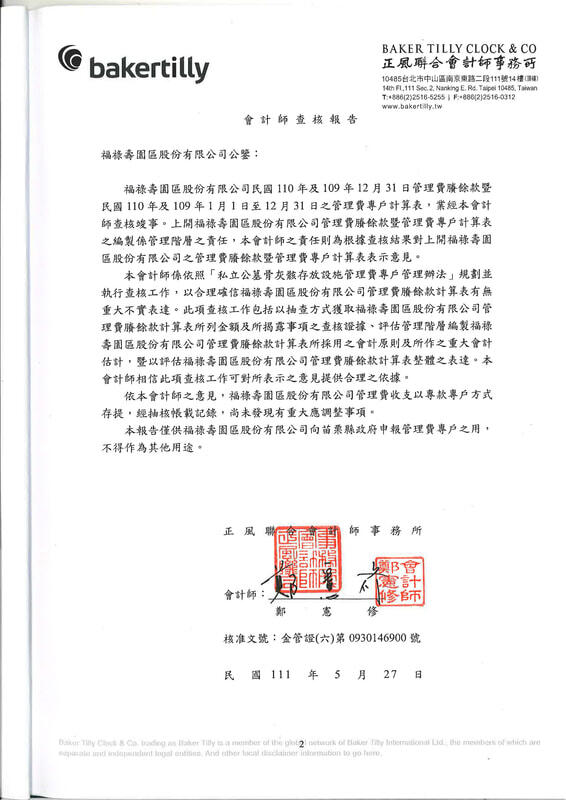 | 天璽物業開發股份有限公司 | 白雯麗 | 台中市北區中清路一段100號B棟13樓 | 04-22031601 |